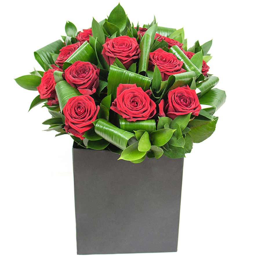 Celebrate beauty with our stunning red rose bouquet, featuring a captivating mix of red roses, aspidistra leaves, and ruscus. This unique arrangement adds elegance and charm to any setting, making it a perfect gift for loved ones or a delightful addition to your own home.
