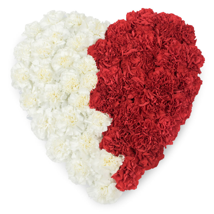 Our Carnation Heart Bouquet is a celebration of refined elegance and heartfelt expression. Each bouquet is intricately arranged with a blend of pristine white and passionate red carnations, hand-selected to ensure exceptional quality and freshness. The heart shape communicates deep emotions and enduring beauty.